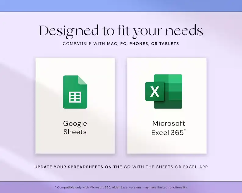 💻 Editable in Google Sheets & Excel 365 – Use on any device