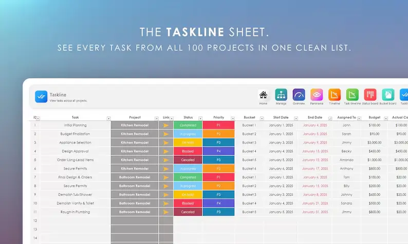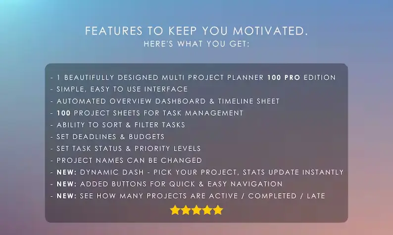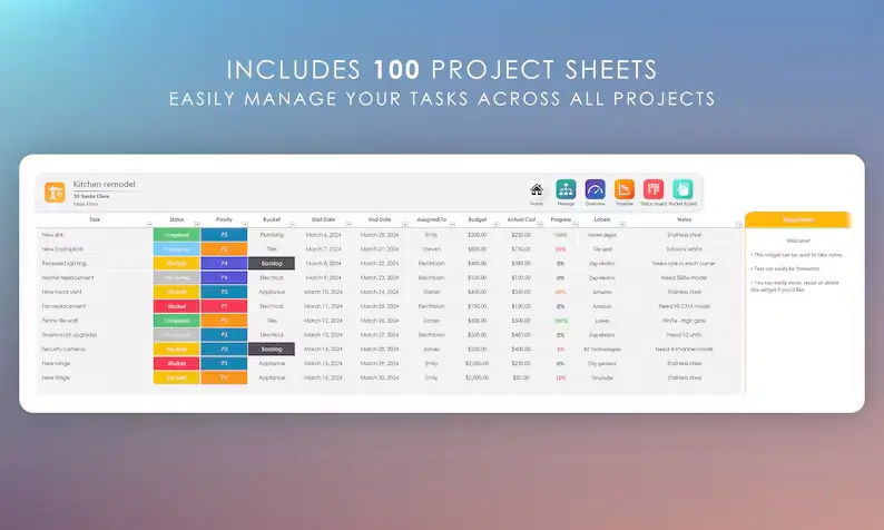 ✔️ Multi Project Planner 100 Pro – V4 (.XLSX file)